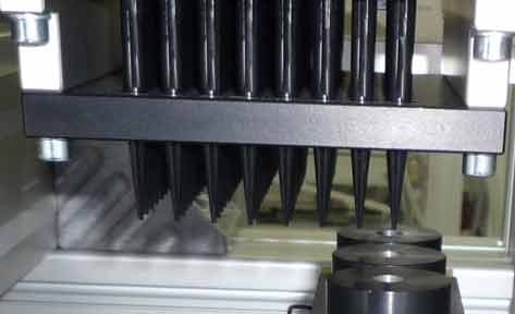 Des pipettes sont utilisées dans l'industrie médicale pour réaliser des dosages de petits volumes. Pour garantir la précision de ce dosage, les pointes de pipettes doivent avoir une géométrie ainsi qu'un état de surface parfait. Le processus de production par injection plastique des pointes de pipettes ne permet pas une maîtrise à 100% de la qualité. Un contrôle automatique à 100% est donc nécessaire.