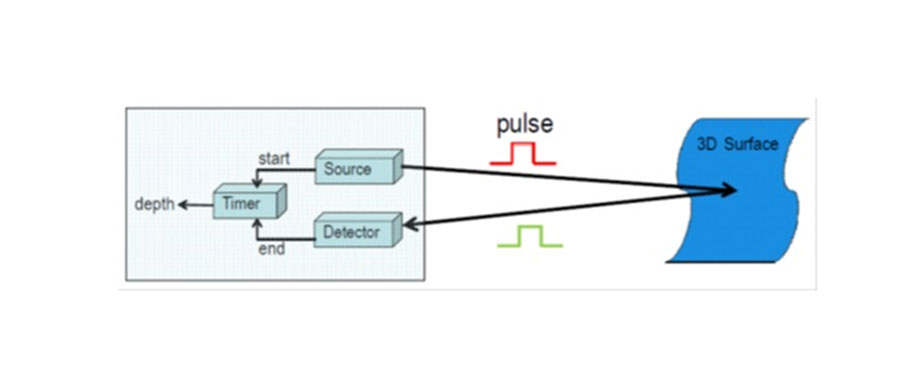 Principe de fonctionnement du Scanner par temps de vol (TOF: Time of flight)