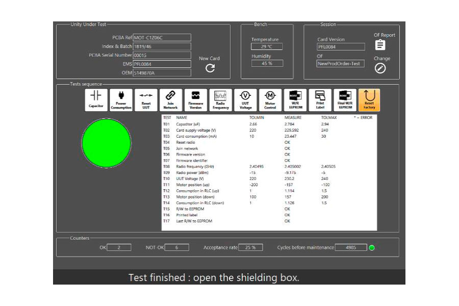 Afin de garantir une qualité optimale de ses produits auprès de sa clientèle, Profalux a fait confiance à qmt pour la réalisation de bancs de test en fin de production des cartes moteurs de volets roulants pilotés utilisant le protocole de communication ZigBee